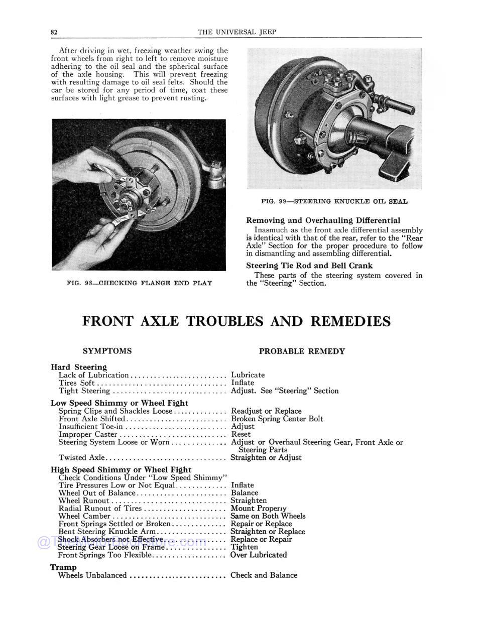 Below:1945 - 1949 Jeep Willys CJ-2A Maintenance Manual Sample Page - Front Axle Troubles and Remedies