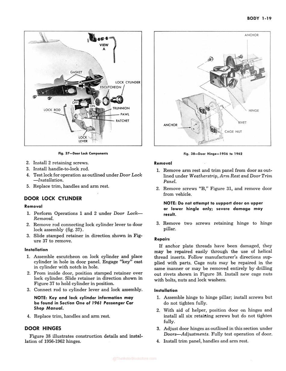 Below: 1953-1962 Chevrolet Corvette Servicing Guide Sample Page - Body Section