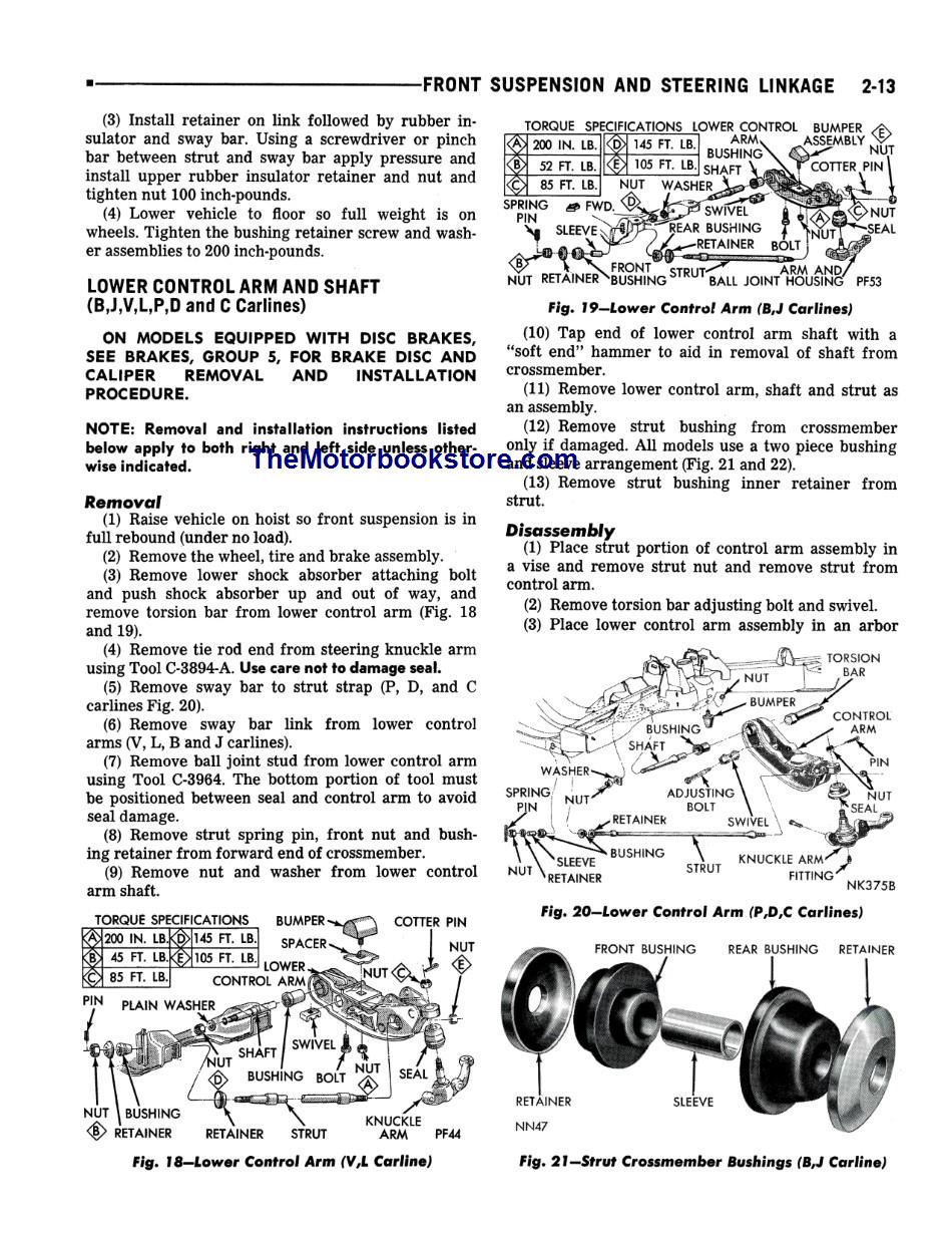 This hefty guide includes 6-cylinder and V8 engines: 198, 225, 318, 340, 360, 400 and 440 CID. There are complete diagnosis, service and repair procedures for all components and the systems indicated.