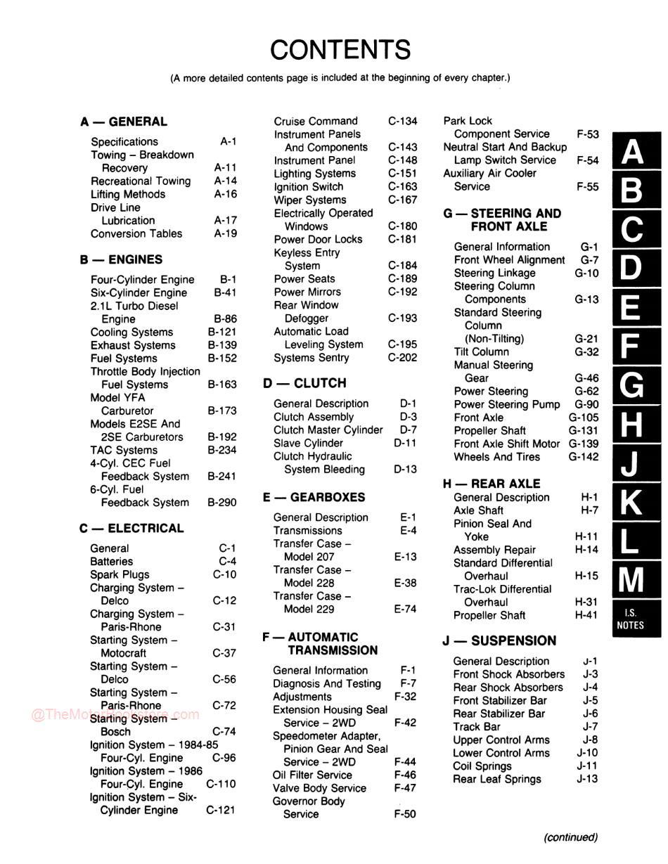 1984 - 1988 Jeep Cherokee / Wagoneer Shop Manual - M.R. 244 - Table of Contents 2