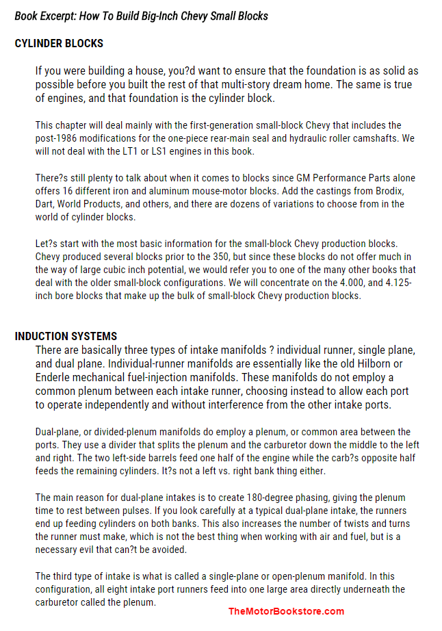 Below: How to Build Big-Inch Chevy Small Blocks Sample Page Excerpt. Copyright CarTech.