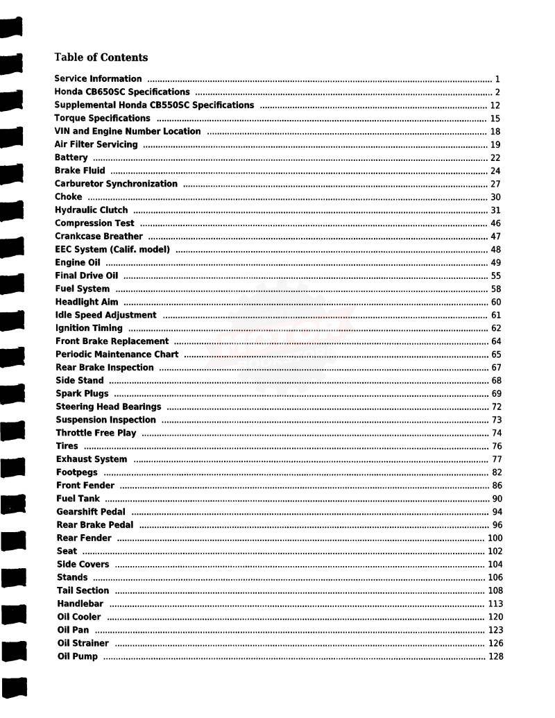 Honda CB550 CB650SC Nighthawk Service Manual: 1983-1985 - Table of Contents 2
