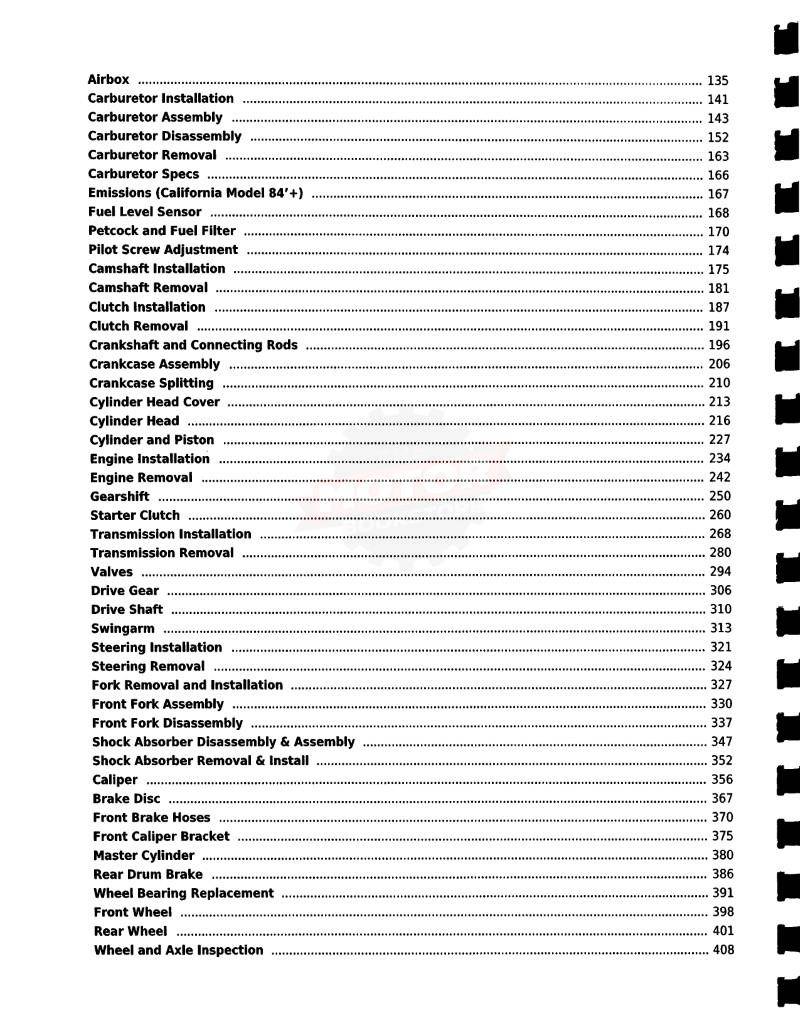 Honda CB550 CB650SC Nighthawk Service Manual: 1983-1985 - Table of Contents 3