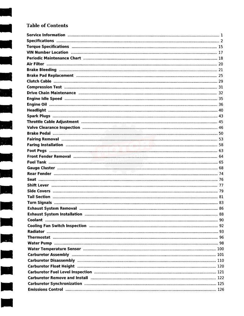 Kawasaki Ninja EX250 Service Manual: 1986-2007 - Table of Contents 2